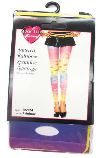 Tattered rainbow spandex leggings