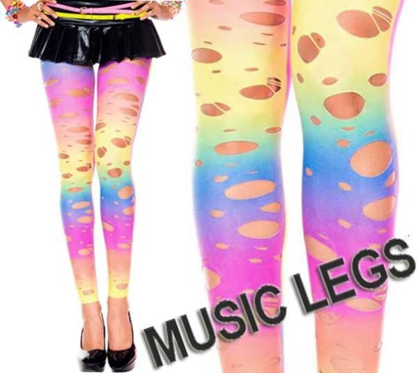 07a)MUSICLEGSレインボー穴あきレギンスタイツ ML35124 派手タイツ ストッキング スパッツ ダメージ加工 ダンス ダンサー 衣裳 衣装