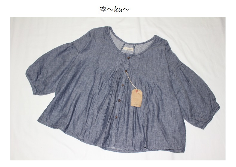 空~ku~★ダンガリーガーゼコットン ギャザーワイドブラウス/新品