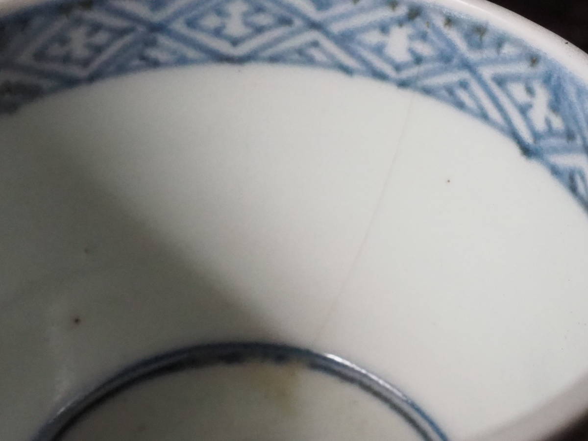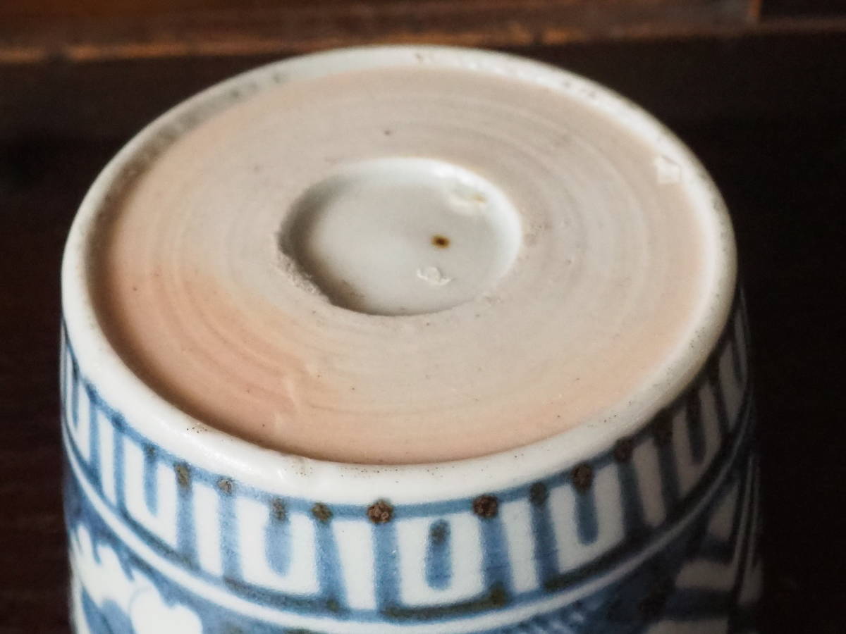 【古伊万里江戸弧線地紋と撫子蕎麦猪口58】染付呉須白磁骨董古民具古美術箪笥膾鉢膳向付古道具アンティークインテリア和食器割烹古民家