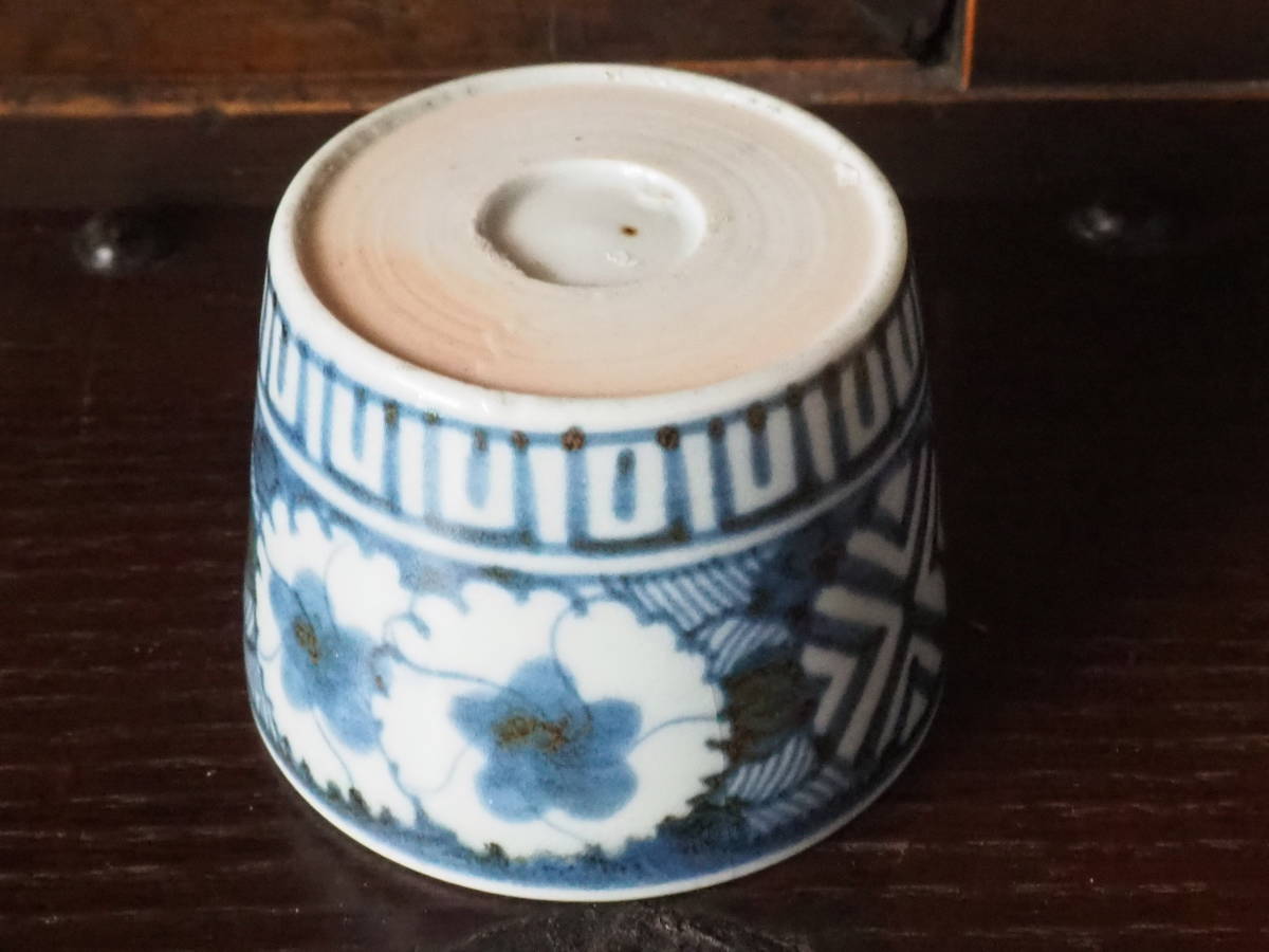 古道具の市で見つけた古伊万里弧線地紋と撫子蕎麦猪口です。