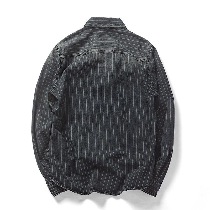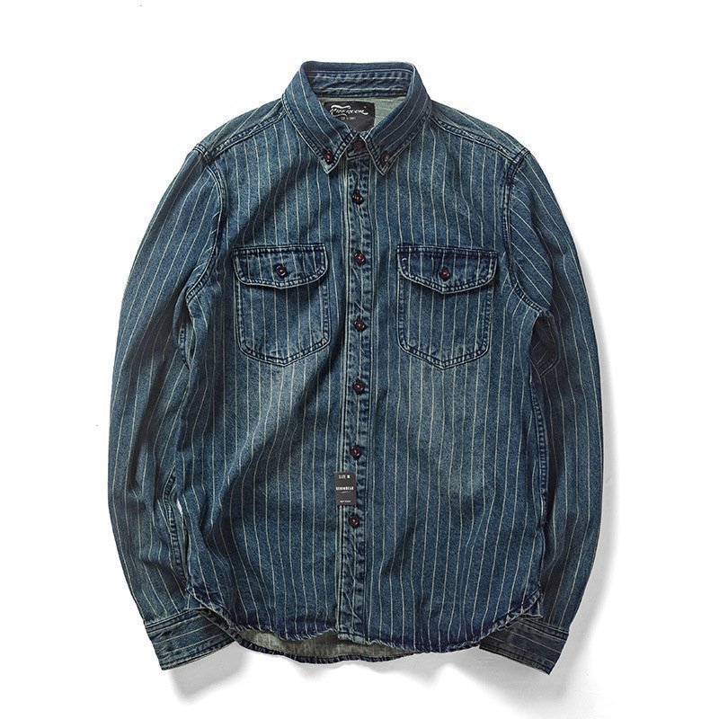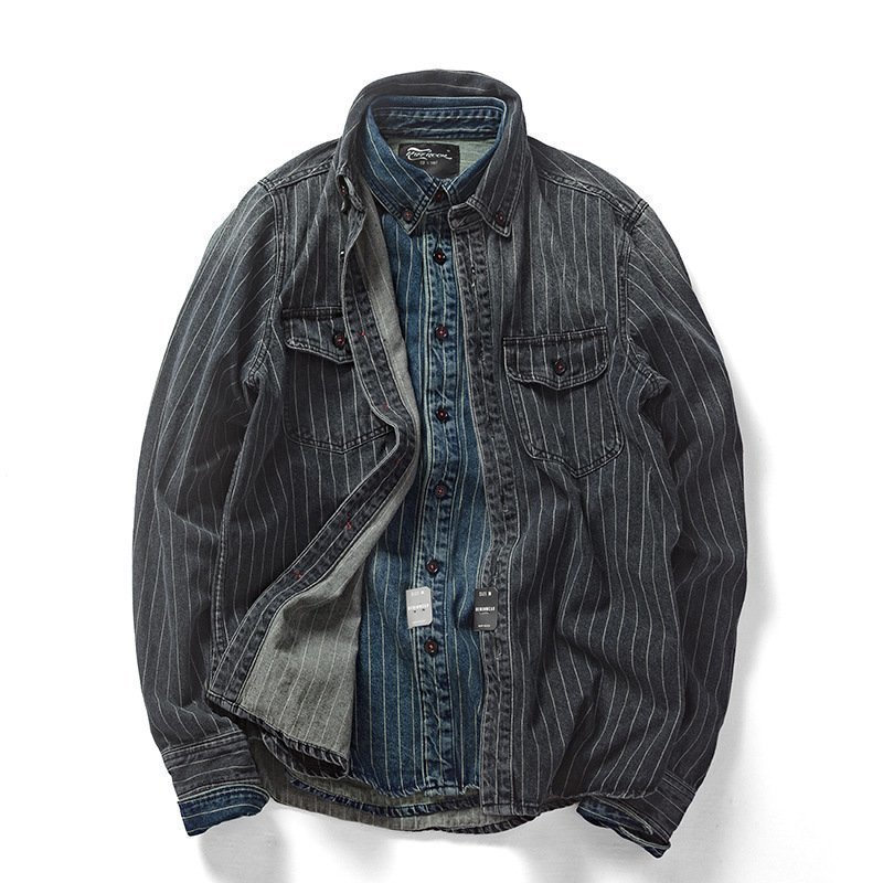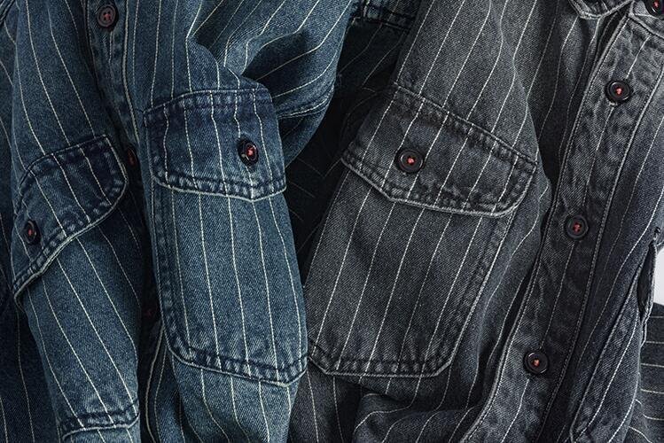 アメカジ デニムジャケット ストライプ デニムシャツ ワークジャケット メンズ ヴィンテージ加工 綿100% ★2色選択可/S~2XLサイズ