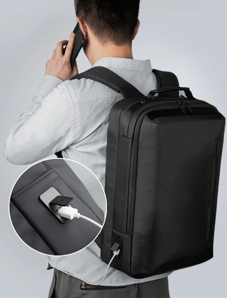 【多機能・安全性UP】外部USBポートと盗難防止の隠しポケット装備。付属のケーブルをバックパック内のモバイルバッテリーと繋げ、そして充電ケーブルをUSBポートに差し込めて、背負ったままスマホを充電できます。付属ケーブルは取り外し可能で洗い時も安心します(モバイルバッテリーは付属しません)
