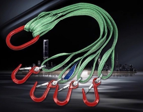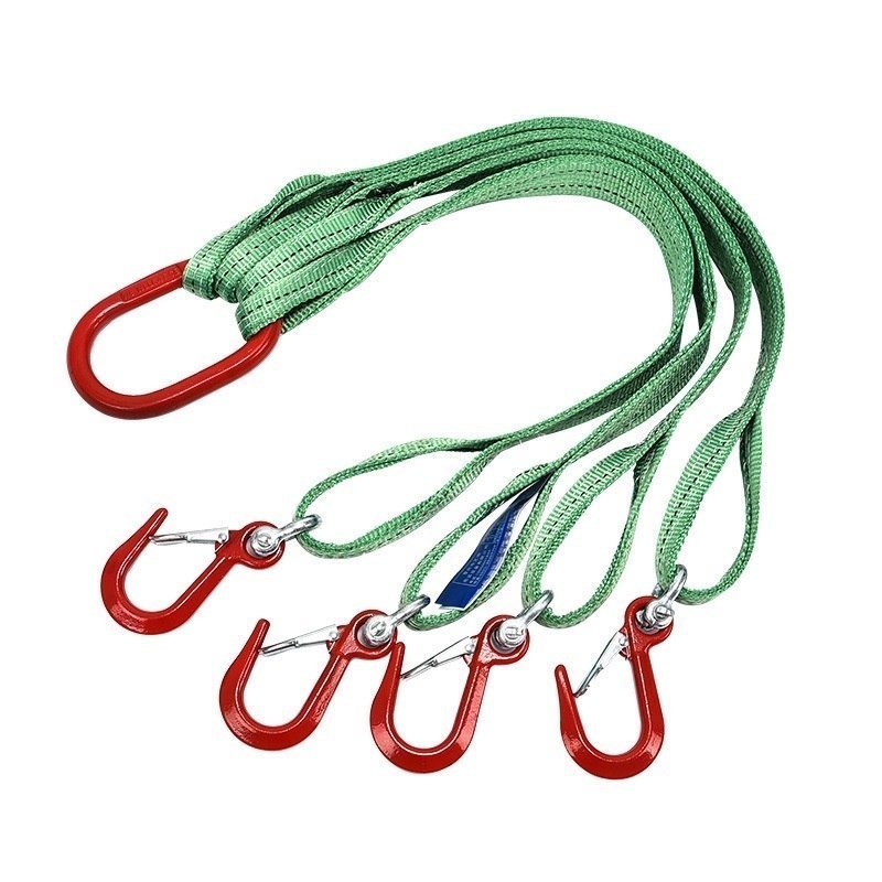 4点吊りスリングベルト 運搬作業用ベルトスリング 合金鋼製フック付き リング付き 長さ1M 最大使用荷重3t