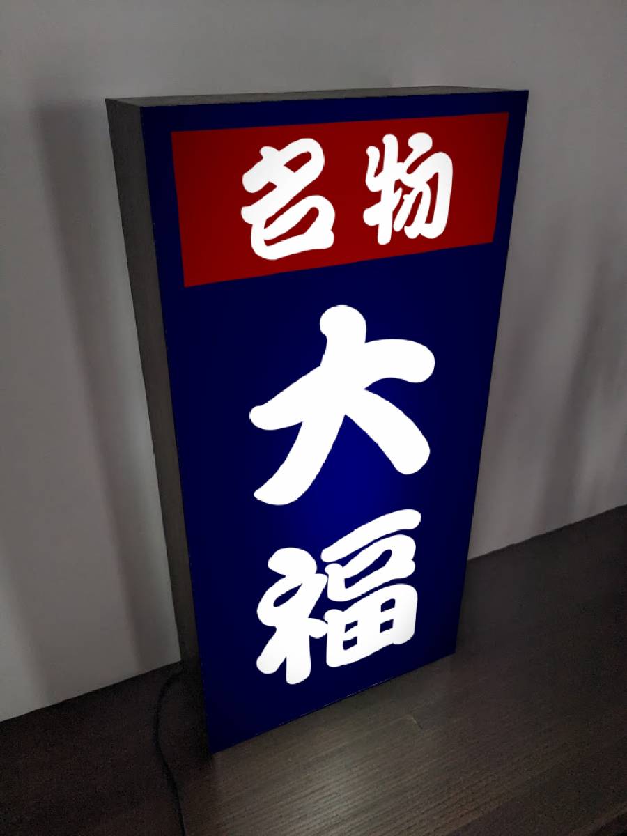 店舗、自宅、オフィスの窓際・カウンター・棚・テーブルやちょっとしたスペース、車内・キッチンカー・屋台・イベント・パーティーなどに 邪魔にならず丁度良い大きさの電飾看板Lサイズです★ 文字変更無料、プレゼントにも大変好評頂いております★ ◆サイズ◆40センチ×20センチ×奥行き7センチ ◆材質◆本体(アクリルプラスチック製)・表示面(IJバックライト発光フィルム貼り) ◆電源◆USB供給電源(家庭用コンセントコネクタ付き) 〇他サイズ〇 ●基本サイズ縦10センチ×横20センチ (3D造形BOX黒本体) ●Mサイズ 150mm×300mm ●LLサイズ 300mm×600mm ●3Lサイズ 400mm×800mm ◆オリジナルデザイン・オーダーも承っておりますので、お気軽にお問い合わせください。 自社製造製品 店舗 自宅 キッチンカー フードトラック 屋台 パーティー イベント サイン ランプ ライト 照明 看板 インテリア雑貨 置物 雑貨 テーブル カウンター 電飾看板 電光看板