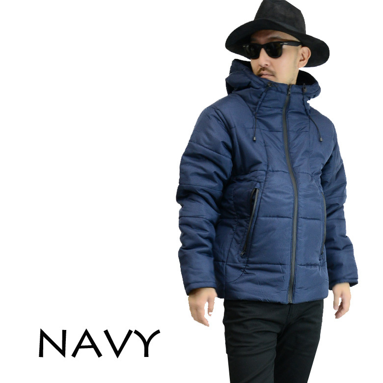 中綿ジャケット/キルティング/止水ジップ/幅広ポケット/ボリュームネック/