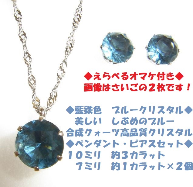 ◆藍鉄 色 ブルークリスタル ペンダント ピアス セット ステンレス製 日本製◆ | |||