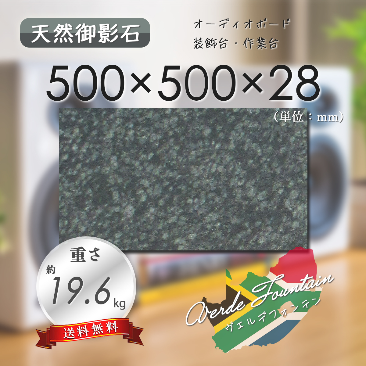 【高級天然御影石】 オーディオボード 作業台 ヴェルデフォンテン 500mm×500mm×28mm 1面磨き 新品 即決 送料無料 ★超特価★