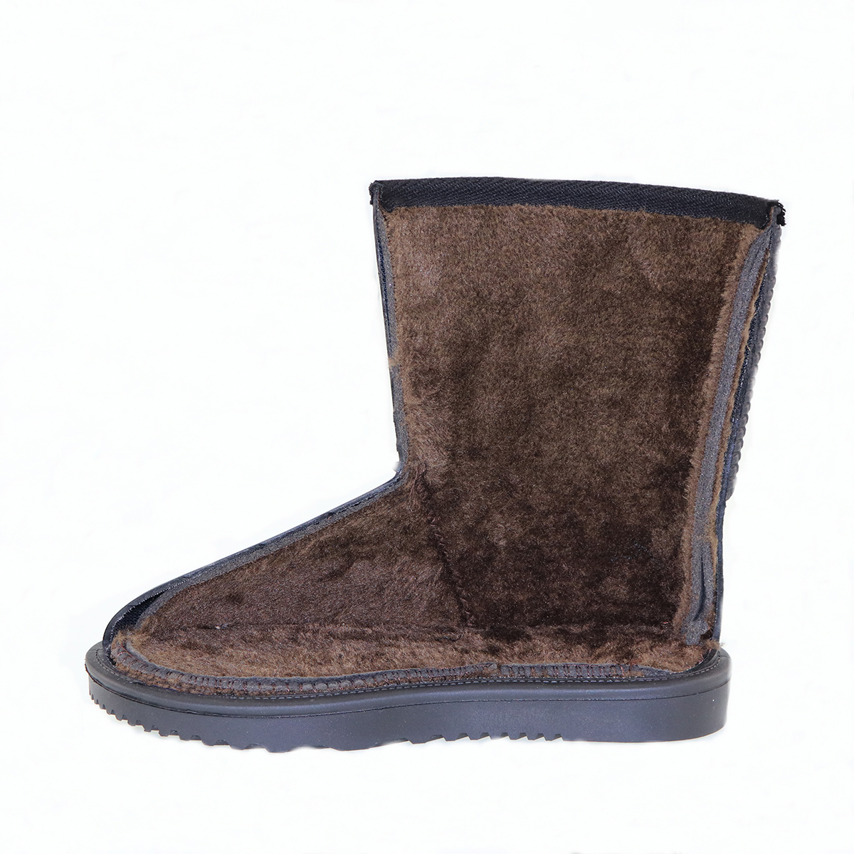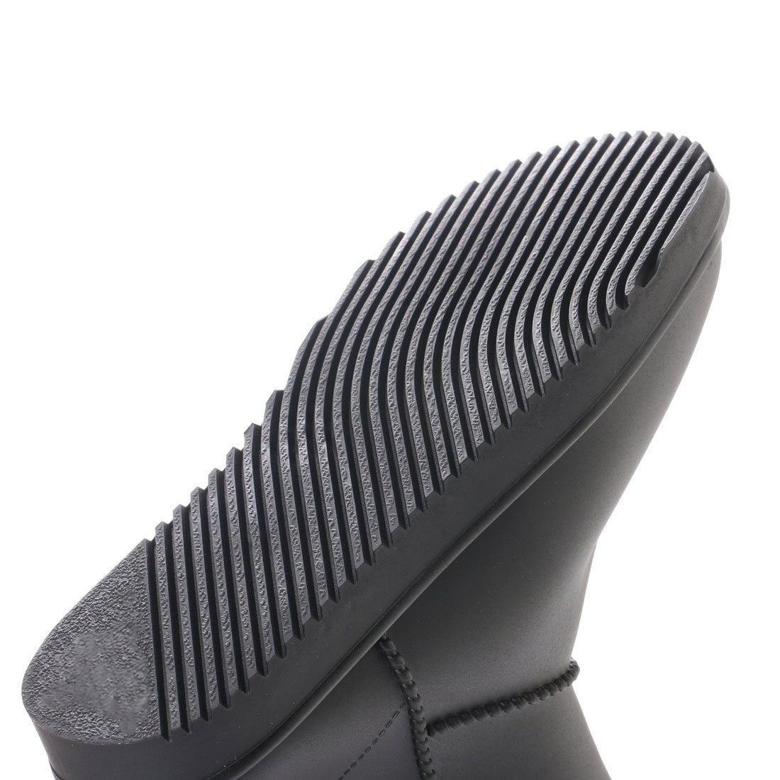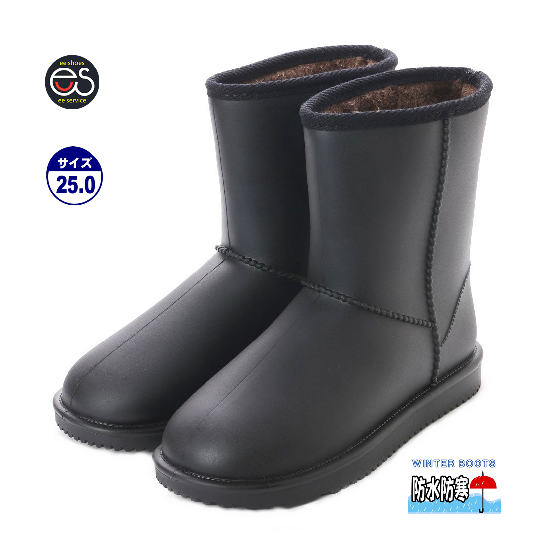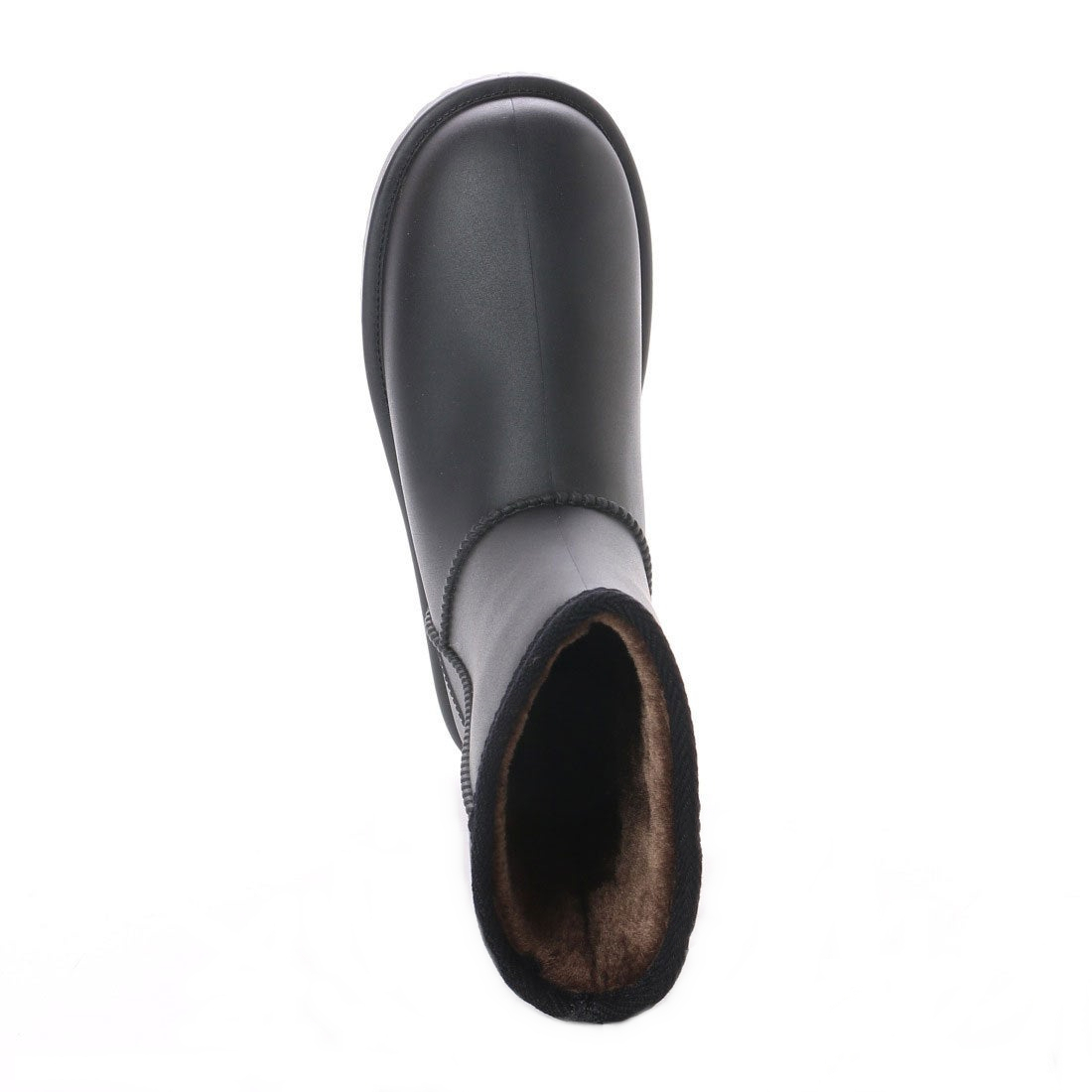 防寒ブーツと言えば、定番のムートンブーツがあり、一部の商品に防水機能が見られますが、完全防水ではありません。この商品は甲の表面と底を合成樹脂の一体成型をすることで、レインブーツと変わらない完全防水を機能しています。