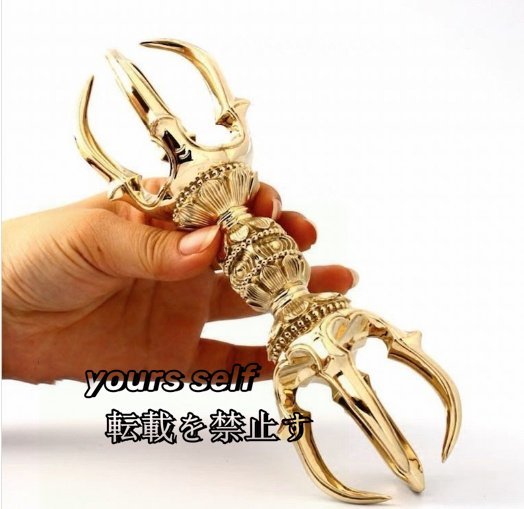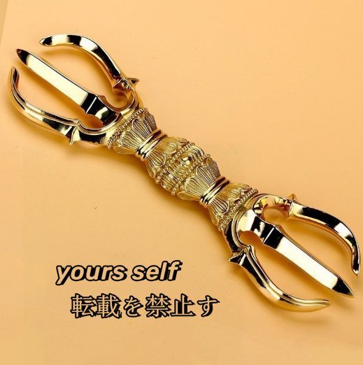 高品質鬼目型 三鈷杵 真鍮製磨き仕上げ 大型165mm 密教法具 寺院用仏具