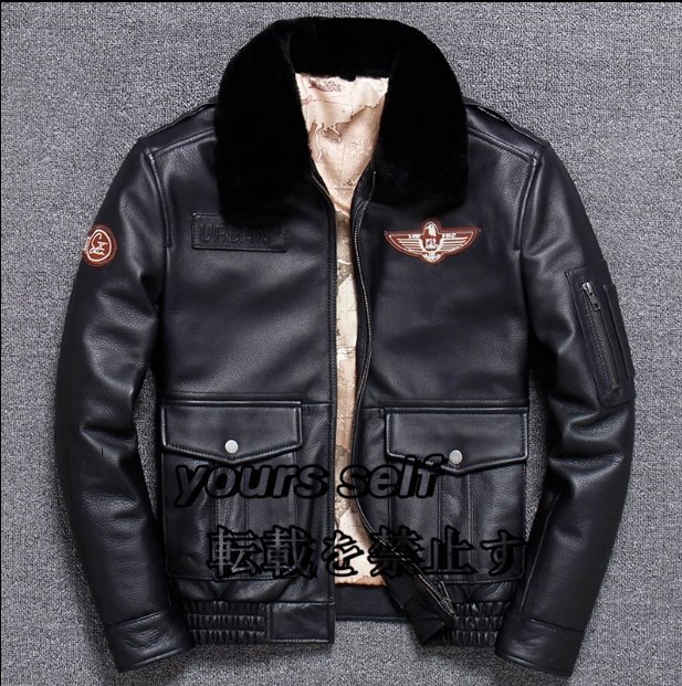 レザージャケット 上品 ファー襟付き 本革 牛革 刺繍 ライダースジャケット  フライトジャケット 革ジャン S~5XL 黒