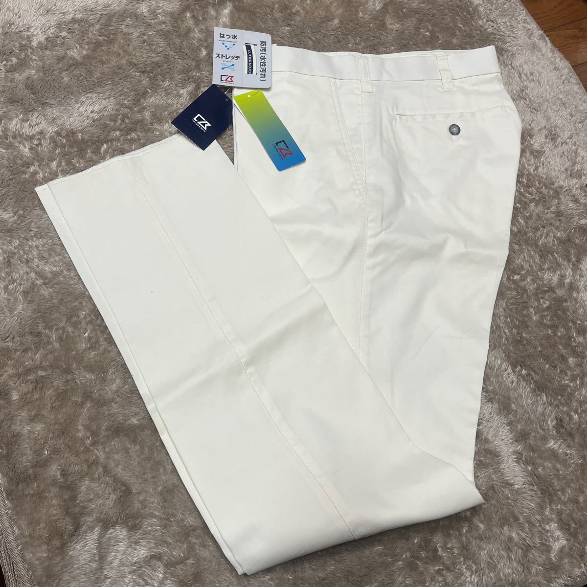 超お値打ち出品 希少な大きめサイズ CUTTER&BUCK Men's ストレッチゴルフパンツ アイボリー W92cm 新品タグ付き未使用品に為ります。