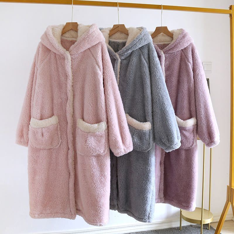 厚手ルームウェア パーカー レディース パジャマ もこもこ 裏起毛 ナイトウェア 部屋着 ふわふわ 暖かい 秋冬