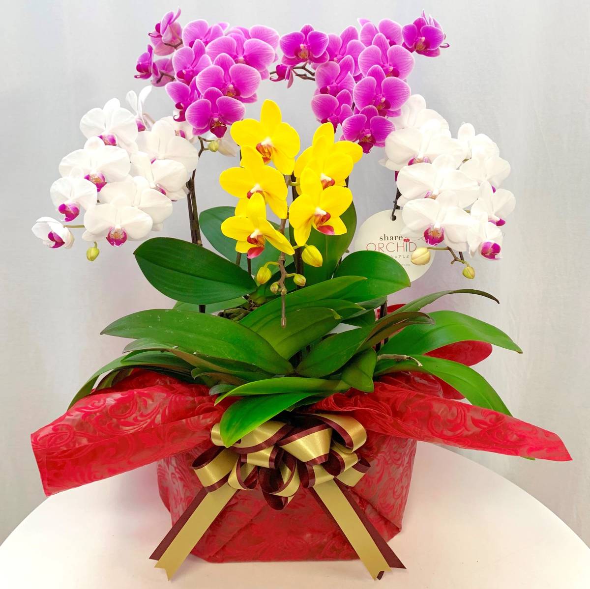 贈答用としてご利用いただける胡蝶蘭ミディ1本立、5鉢が一つになった商品となります。