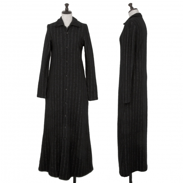 | ワイズY's ウールアクリル起毛ストライプコート 黒M位 |