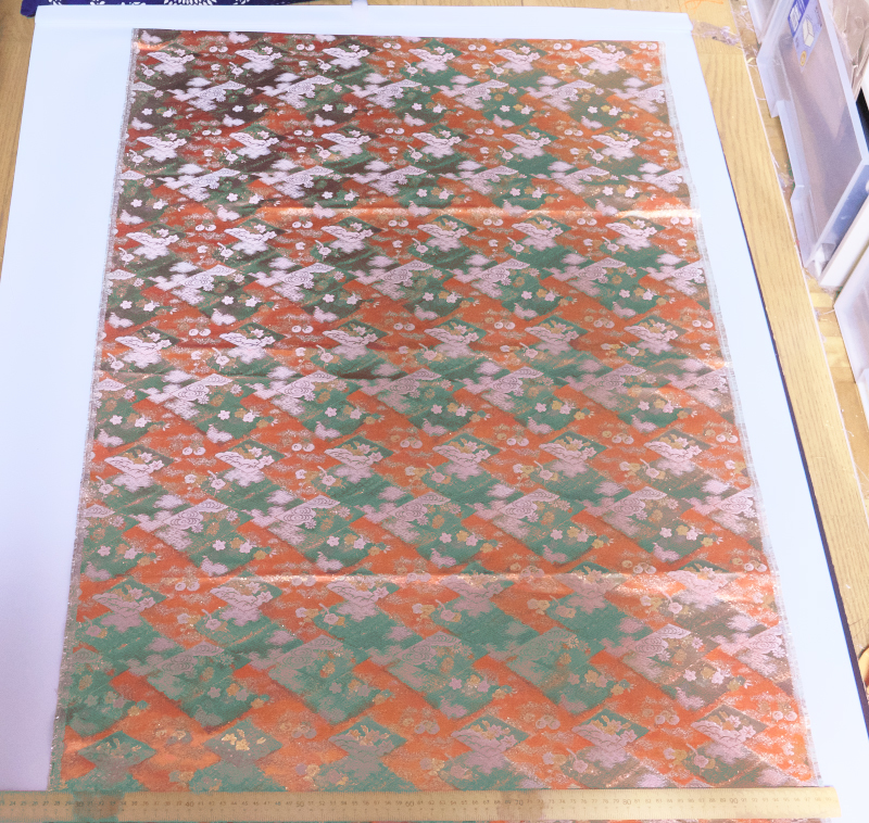 新品の化繊(ポリエステル)の金襴の端切れです。