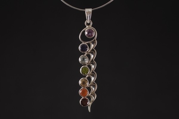 シルバーのフレームに包まれた7種類の天然石のペンダントトップ