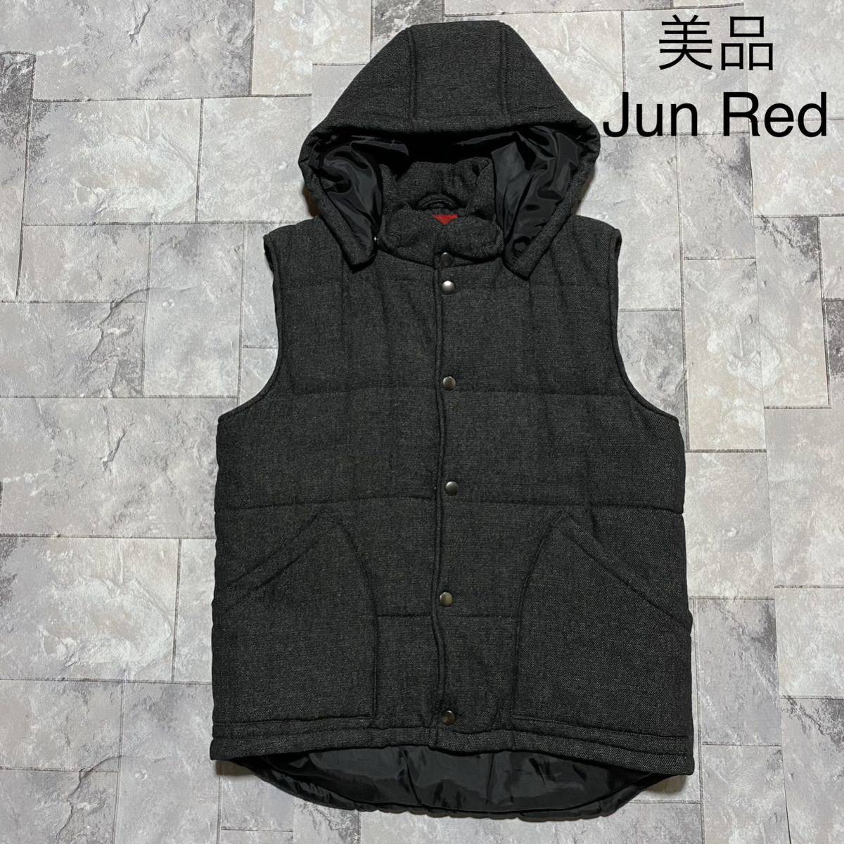 美品 Jun Red ジュンレッド 中綿ベスト ウール フード取り外し可 Jun men ジュンメン グレー サイズ1(S相当)玉FS1188