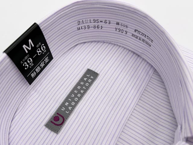 DAUL95-63-V909-長135-9■M(えり回り39-ゆき86)■長袖ドレスシャツ■UNIVERSAL LABORATORY ワイシャツ 形態安定 スッキリシルエット