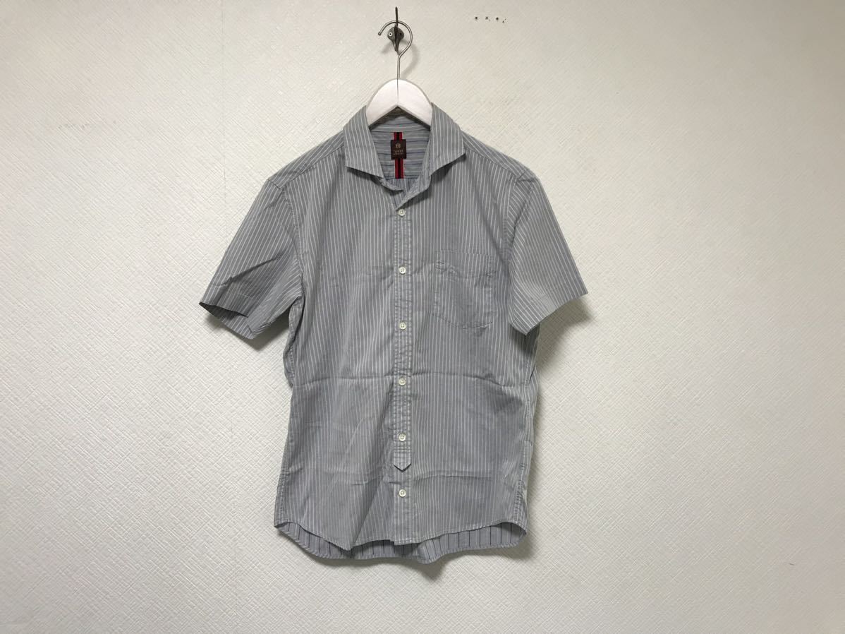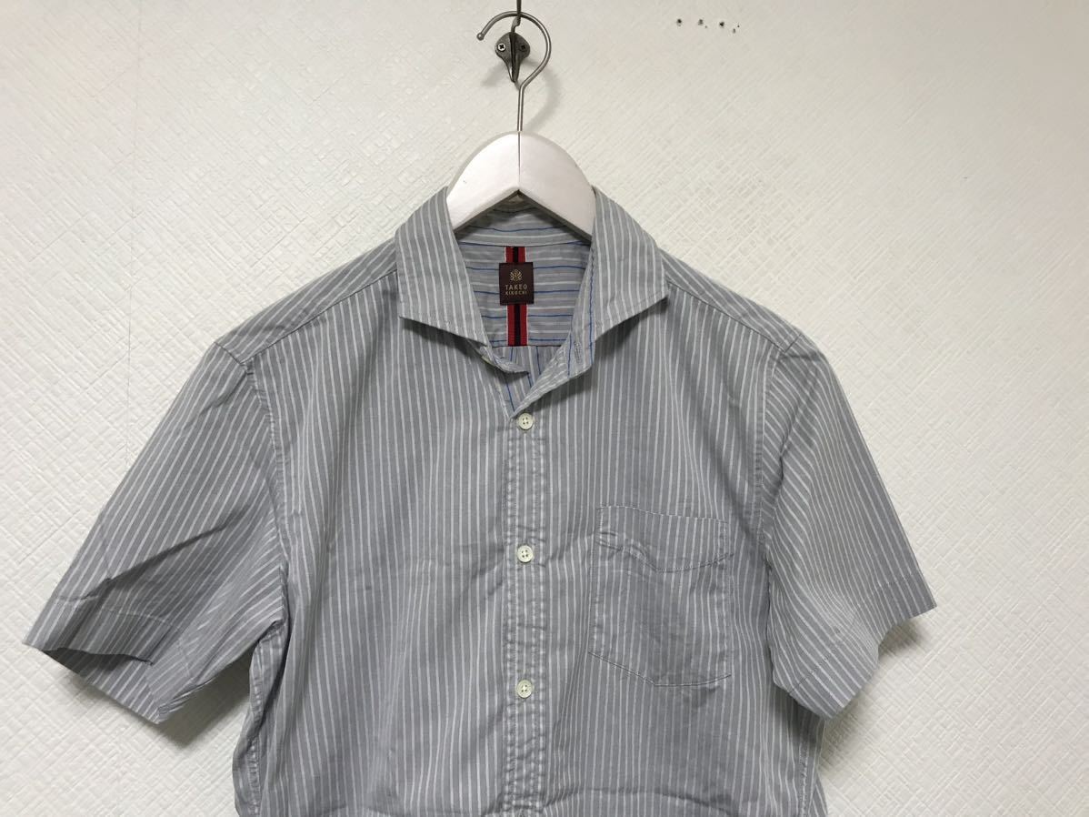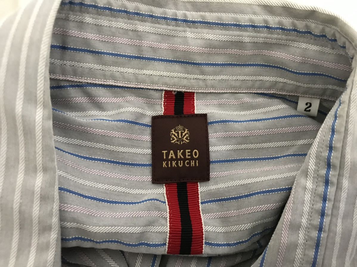 商品名:美品本物タケオキクチTAKEOKIKUCHIコットンストライプ柄ドレス半袖シャツメンズサーフアメカジミリタリービジネススーツグレー2M日本製