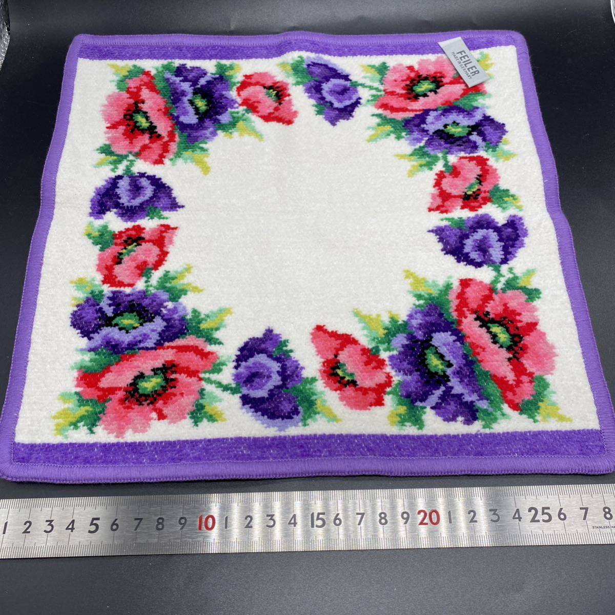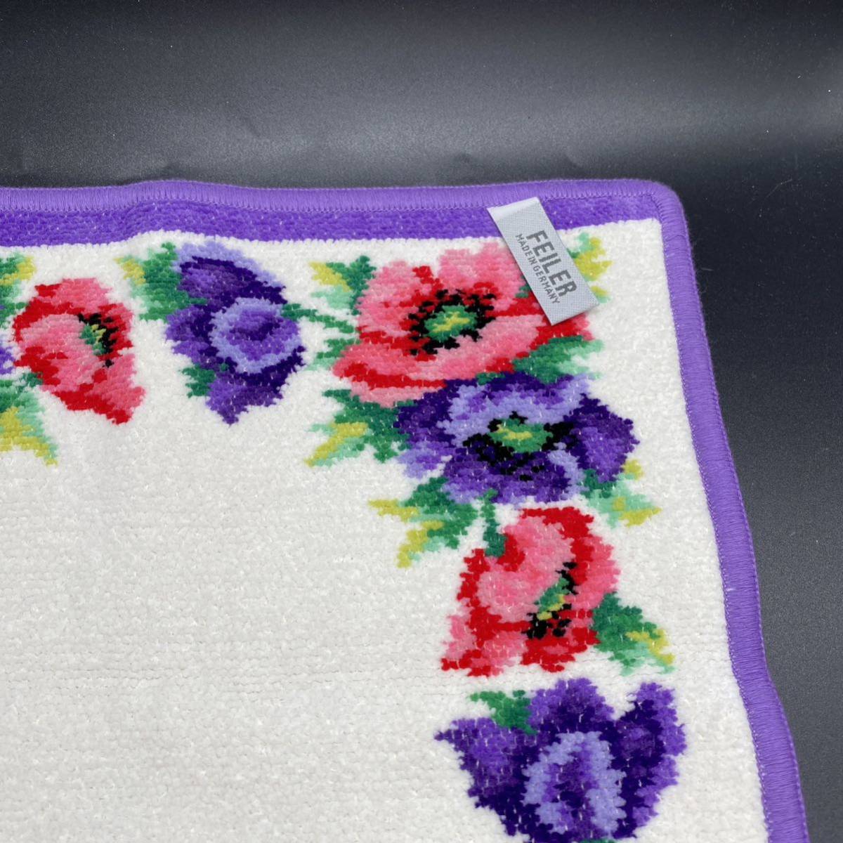 FEILER フェイラー タオルハンカチ  ポピーズ  ホワイト パープル ポピー no.27