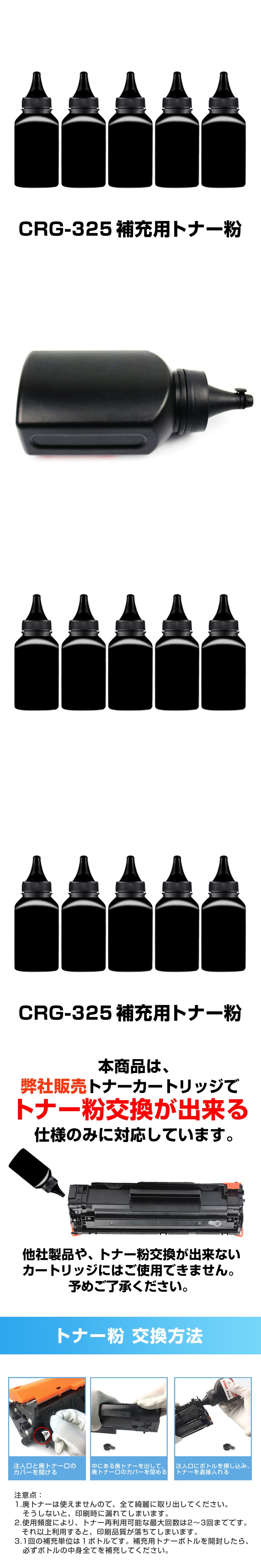 | 大容量、詰め替え補充用のトナー粉です。トナー切れに悩む必要がない安心の5本セットです。※本商品は弊社で販売されているトナー粉交換が出来る仕様のトナーカートリッジのみに対応です。他社製品や、トナー粉交換が出来ないトナーカートリッジにはご使用いただけません。予めご了承ください。商品名:CRG-325 補充用トナー粉,内容物:トナー粉5本,純量:70g/本,カラー:ブラック,対応機器:レーザープリンター,対応機種:弊社製品トナー粉交換可能トナーカートリッジ |
