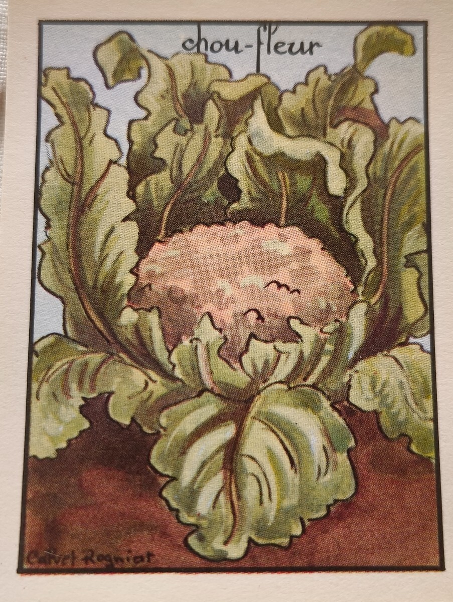葉付き カリフラワー ブロッコリー 野菜 ベジタブル フランス アンティーク 図鑑 スタンプ ヴィンテージ ハンコ イラスト 素材