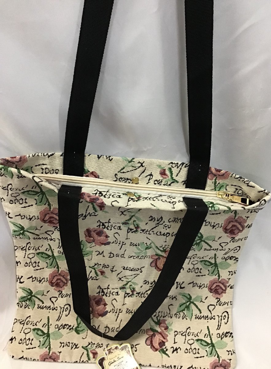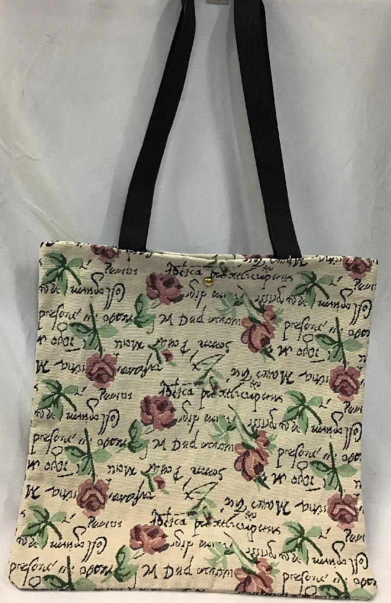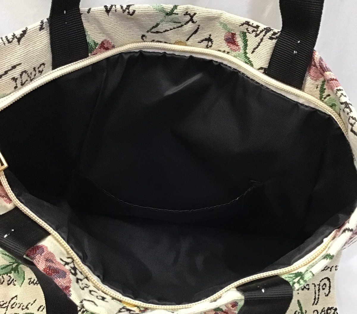 送料無料 A4サイズ対応 トートバッグ サブバッグ レッスンバッグ エコバッグ ゴブラン生地 ローズ柄 ベージュ 手提げ