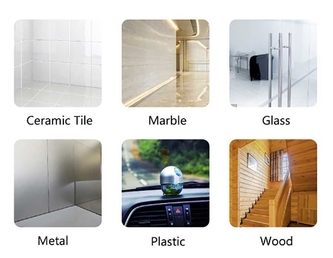 凸凹のない滑らかな面である板壁、家具や机(木、スチール製)、ステンレス、冷蔵庫や洗濯機などの金属塗装面、大理石、タイル、ガラス、プラスチック、吸着面が真空を保てる場所であれば貼れます。耐久性も高く、防水性があるので、湿気ぽい壁にも使えます