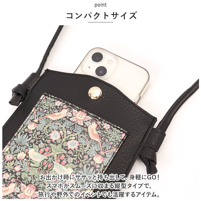 商品説明 | ・・ミニマルスタイルにおすすめ。ナチュラル可愛い「アートプリントスマホショルダー」が新登場。 ・【ウィリアムモリス×JOUET】 ・テキスタイルで有名な「ウィリアムモリス」と、バッグブランド「JOUET」のコラボデザイン。落ち着きのある風合いのボディに、可愛らしいアートプリントをプラス☆ ・【コンパクトサイズ】 ・お出かけ時にササッと持ち出して、身軽にGO!スマホがスムーズに収まる縦型タイプで、旅行や野外でのイベントでも活躍するアイテム。 ・【ワンタッチ開閉】 ・開口部は、片手で簡単に開閉できるマグネットボタン式。中身のこぼれ落ちを防ぎつつ、取り出しがスムーズ。 ・【すっきりとしたフォルム】 ・マチを抑えたスリム設計。ちょっとそこまでの買い物や散歩にはこれ1つで、いつものお出かけにはサブとして。ポケットのない洋服でも安心。 ・【サッと取り出せるフロントポケット】 ・前面のポケットには、ポケットティッシュやパスケースをIN。 ・【使い方自在】 ・ショルダーストラップの結び目を変えることで、簡単に長さ調節可能。斜め掛けや首掛けなど自分仕様にアレンジ☆ ・【ポケット仕様】 ・前面:オープンポケット×1 |