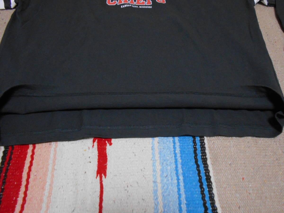 クラシック フットボール特有の厚みの有る良質コットン100%の素材感、スリーブ先のリブ、動き易いルーズフィットのシルエット、フロントのKANSASCITY CHIEFSエンブレム、アーチ型アスレチックロゴ、アームのラインデザイン、チェストの切り返し縫製   等等... 細部まで極めて良いテイスト、着心地が良い上とても丈夫