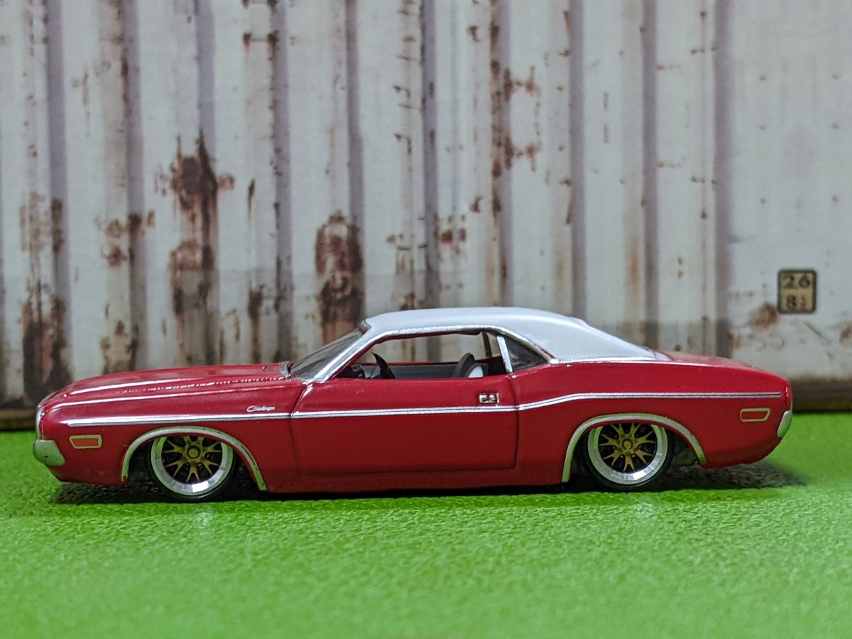★1/64トミカサイズ ダッジ チャレンジャー改深リム、ローダウン、★他にも色々出品中! (検索用、トミカ、京商、グラチャン、深リム、ローダウン、トミカリミテッド)現状渡し、シャーシ面(車両底面)があまり綺麗ではありません。がタイヤは回転しません。未使用新品のモデルを使用していますが改造の際、シャーシ、ボディ内側、等を削っていますのでジャンク扱いでお願いいたします。素人の趣味の範囲の作製ですので仕上げが荒い部分も有るかと思いますので神経質な方は入札をご遠慮下さい。迅速なお取引を心がけますが、当方、仕事の都合上、連絡が遅くなる場合があります。他にも出品していますのでよろしくお願いいたします。