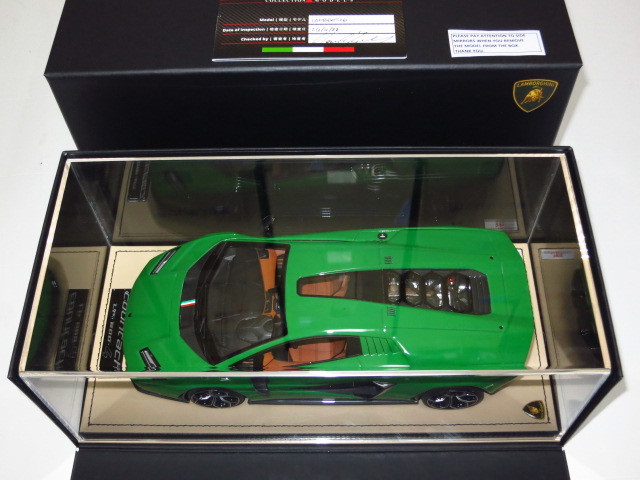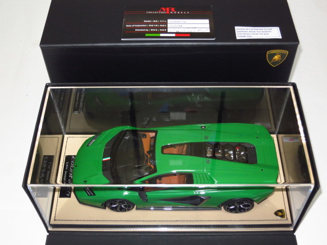 ★ 今回お譲りするモデルカーは、MRコレクション社が純正モデルとして製作 & 販売した 『 世界で1台 』 の カウンタック LPI 800-4 となります。ボディーカラー の方も、初代カウンタック 『 カウンタック プロトタイプ 』 で 有名な グリーン ( Verde Medio ) で塗装された モデル となります。本モデルは 世界で 1台の世界中でも争奪戦の超入手困難モデルとなります。