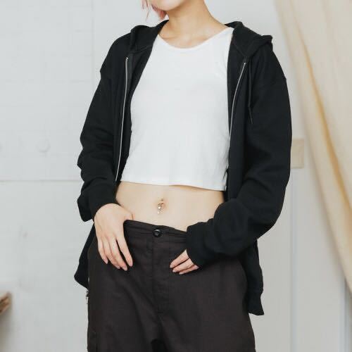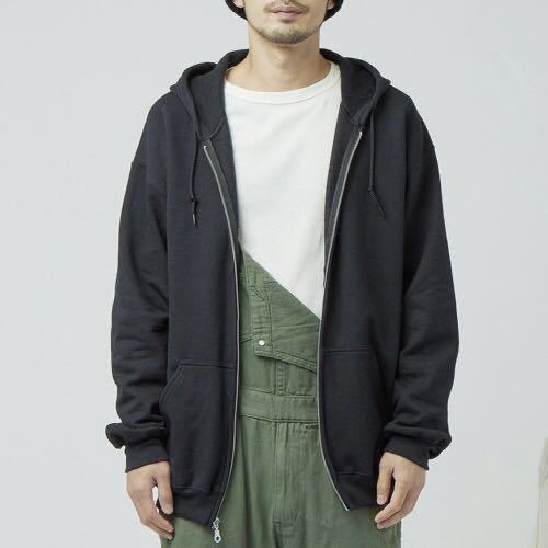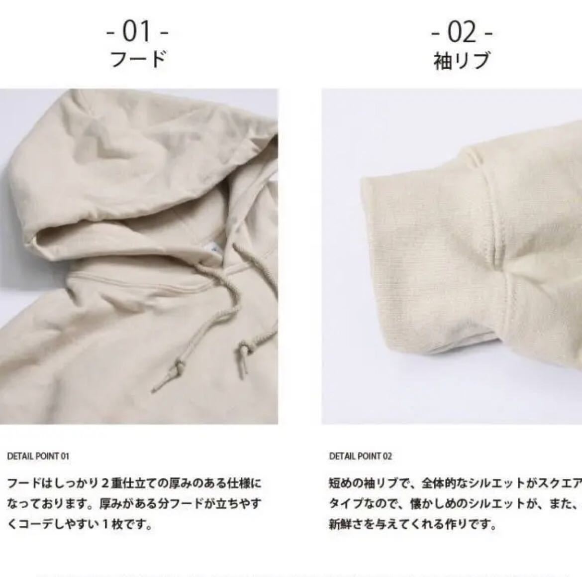 フロントファスナー、緩やかな落ち感のドロップショルダー、程よい身幅と袖丈、リブ袖なので袖はしっかり止まり、ゆとりのあるドローコード付きのフード。