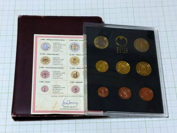 オーストリア プルーフ2005年 コインセット ケース痛み