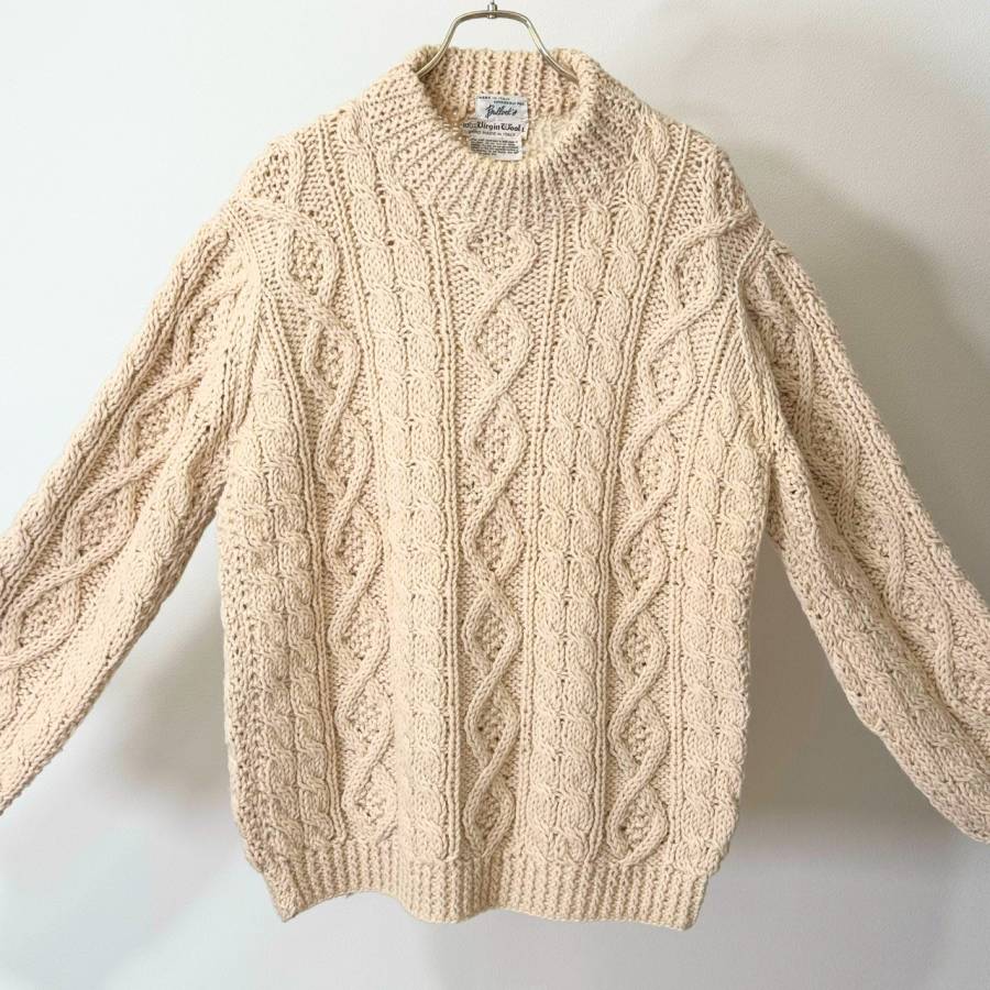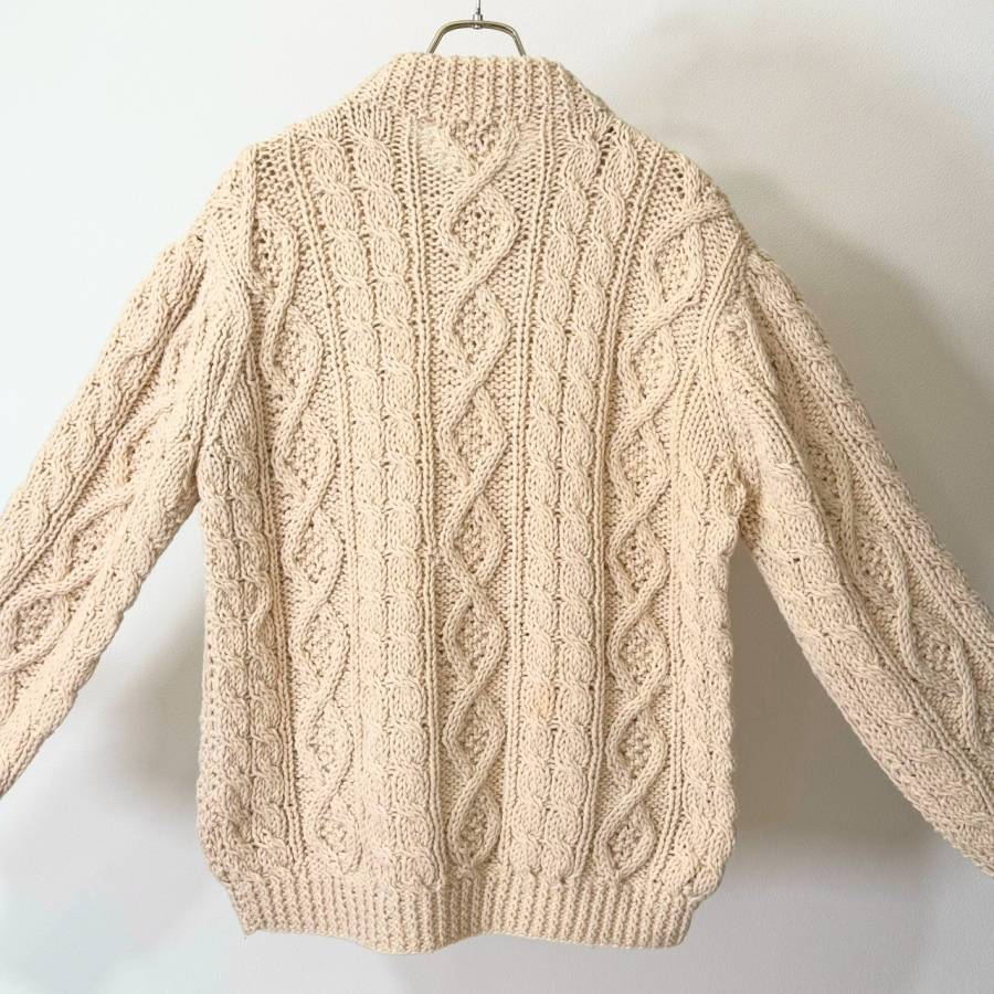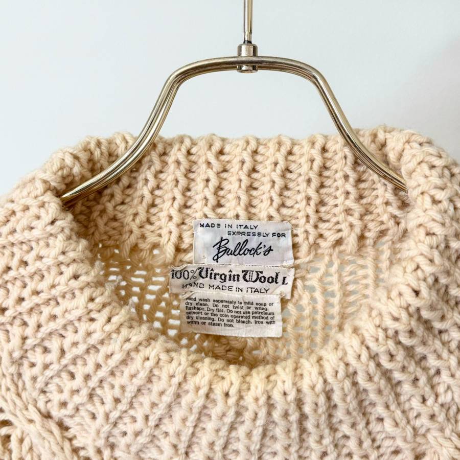 希少《 Mint Condition / Made in Italy 》60s 70s 極上品 【 イタリア製 ビンテージ ケーブル編み ナチュラルカラー アランセーター L 】
