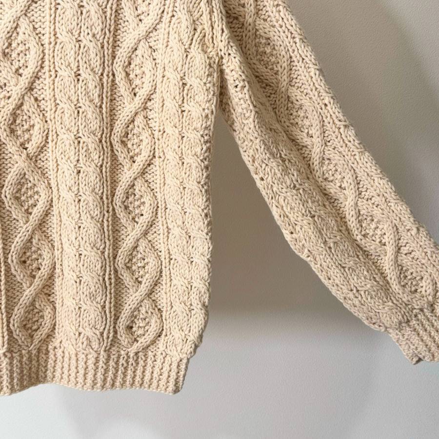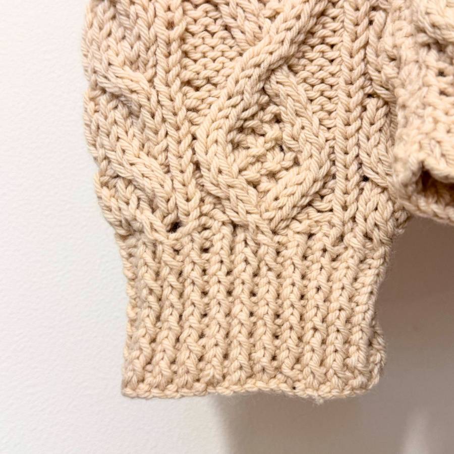 アイルランドのアランセーターのような肉厚でギシギシに編まず、