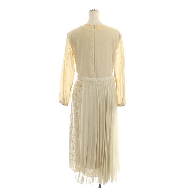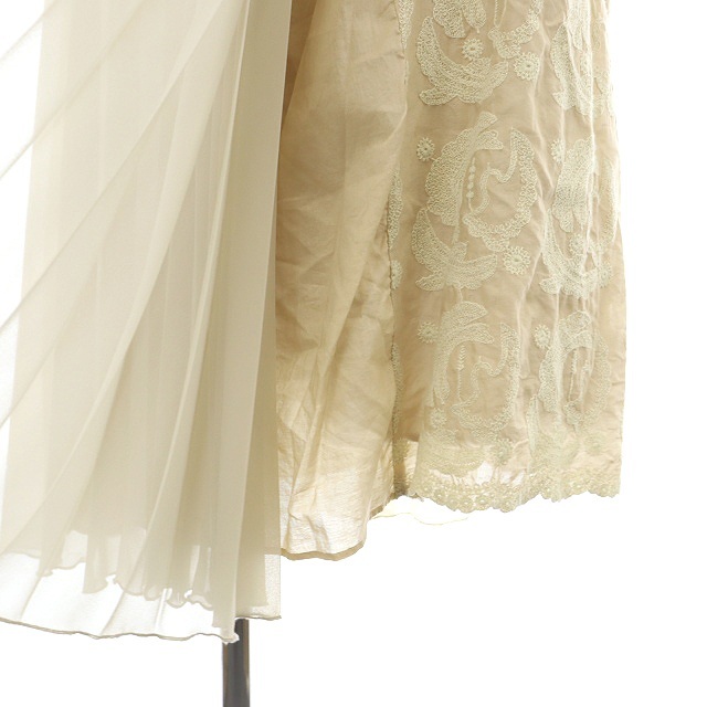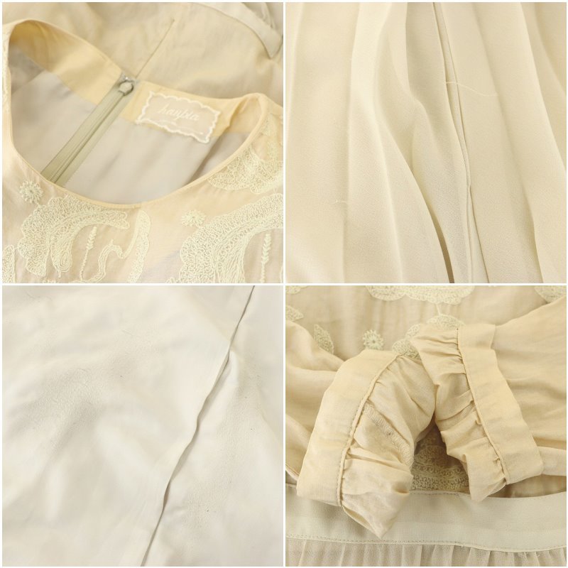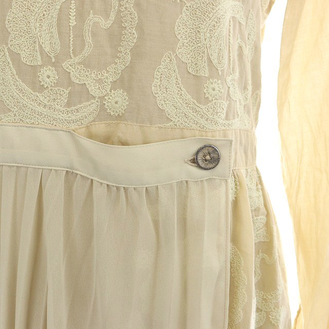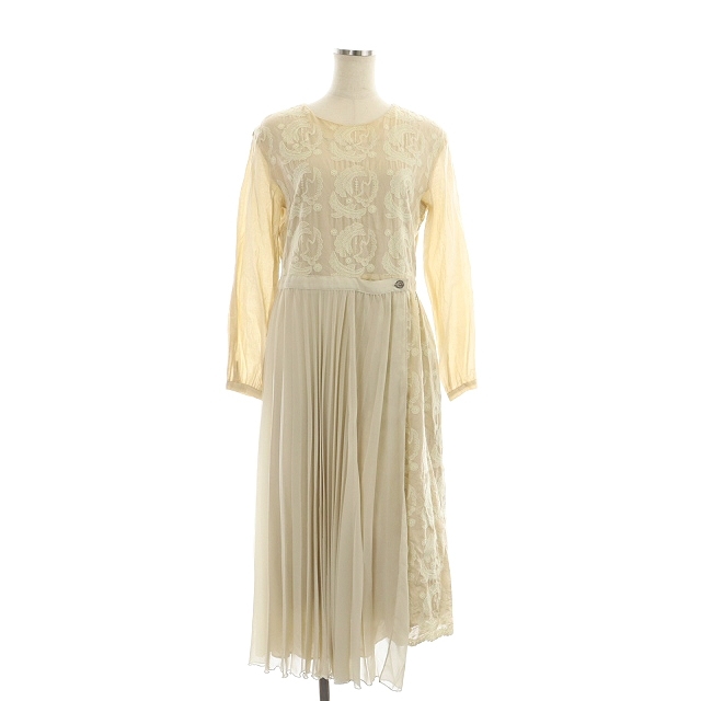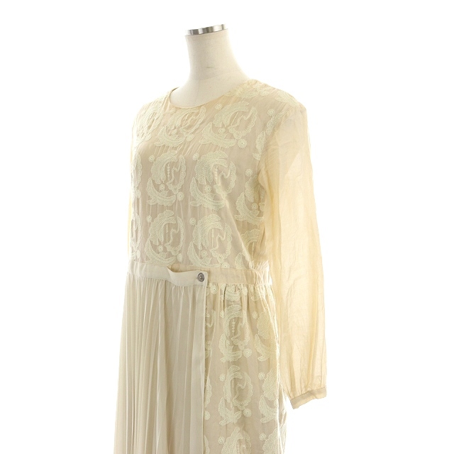 ハウピア haupia プリーツ刺繍ワンピース ロング 長袖 38 ライトベージュ 生成り エクリュ /MI ■OS レディース
