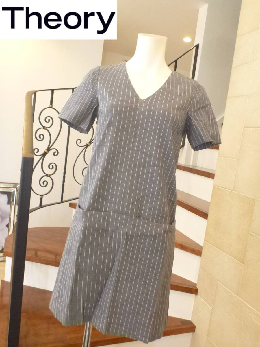 4万 美品 Theory(セオリー)★日本製 ネイビー系×白 ストライプ柄 ワンピース 0 S相当