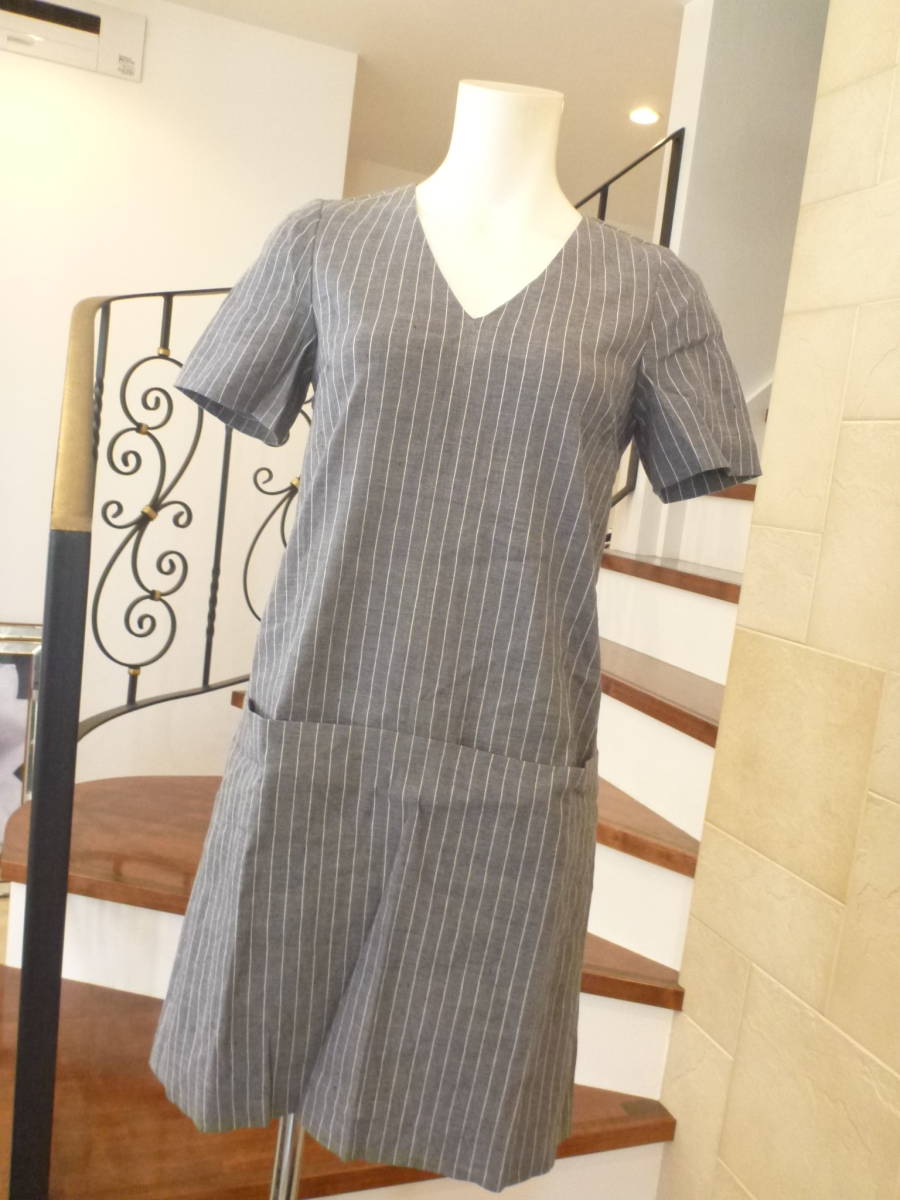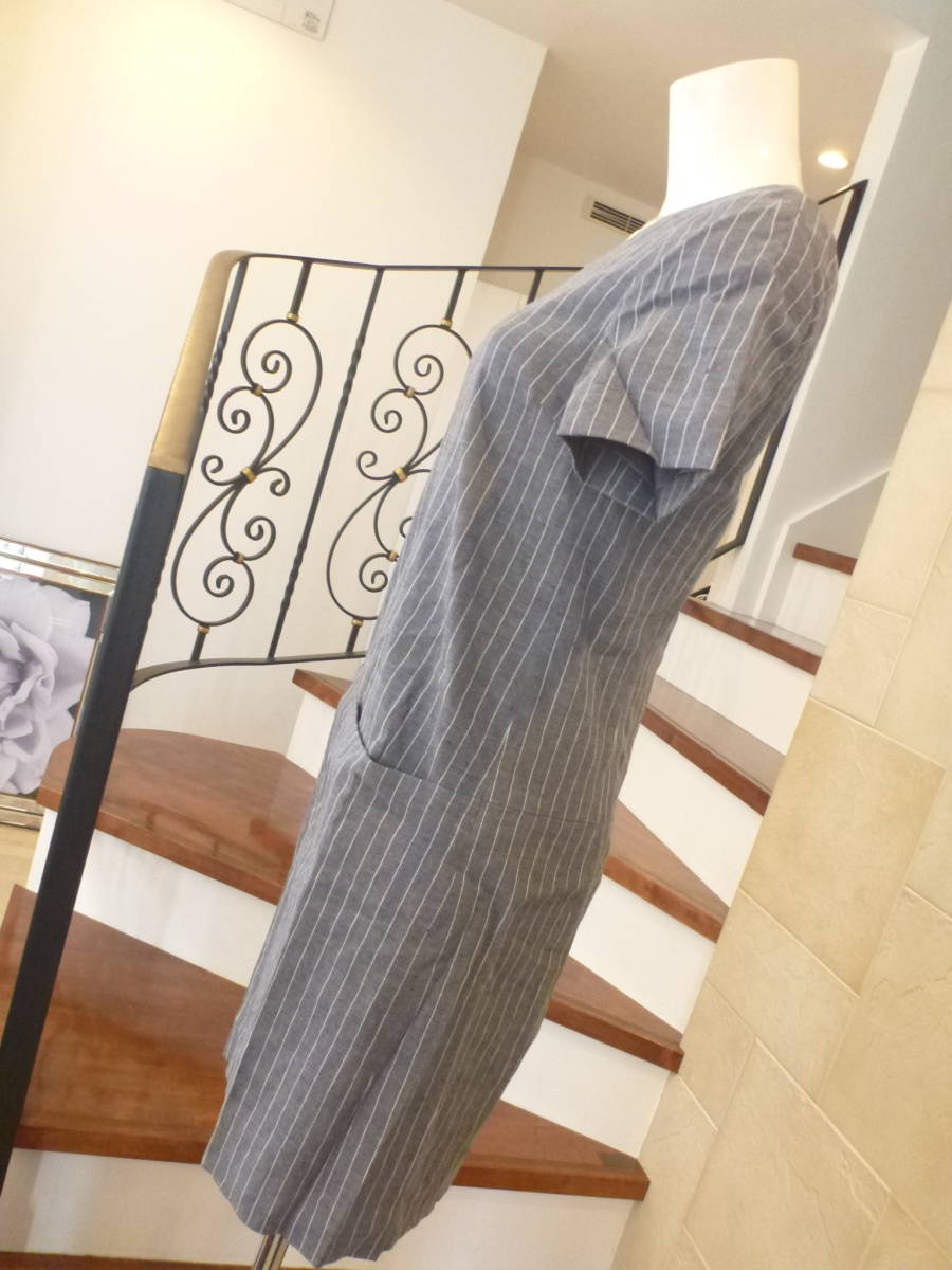 ◆日本製 ネイビー系×白 ストライプ柄 ワンピース