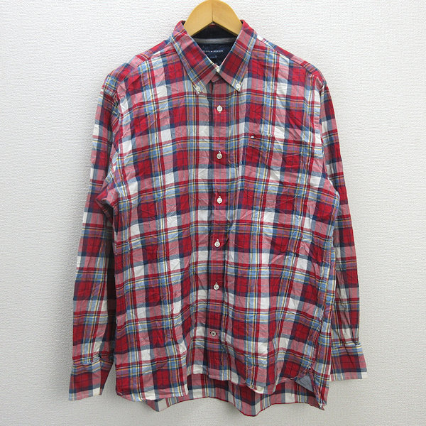 y■トミーヒルフィガー/TOMMY HILFIGERカスタムフィット長袖BDシャツ■赤【XXL】MENS/64【中古】