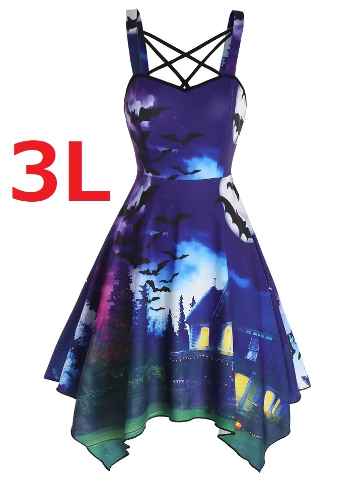 即納 新品 大きいサイズ3L ゴシックハロウィンイレギュラーヘムドレスワンピース パーティ ゴスロリ イベント フェス コスプレ 魔女 地雷系