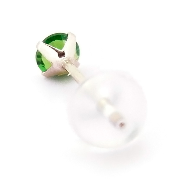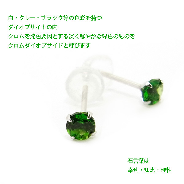 ロシア産クロムダイオプサイド3mmファセットカットストーンを使ったシンプルな4本爪スタッドピアス。クロムダイオプサイドの石言葉は「知性」「理性」「幸せ」
