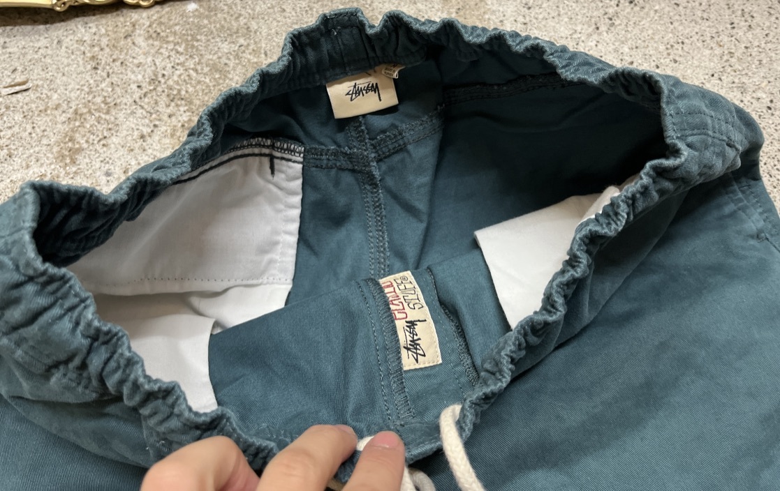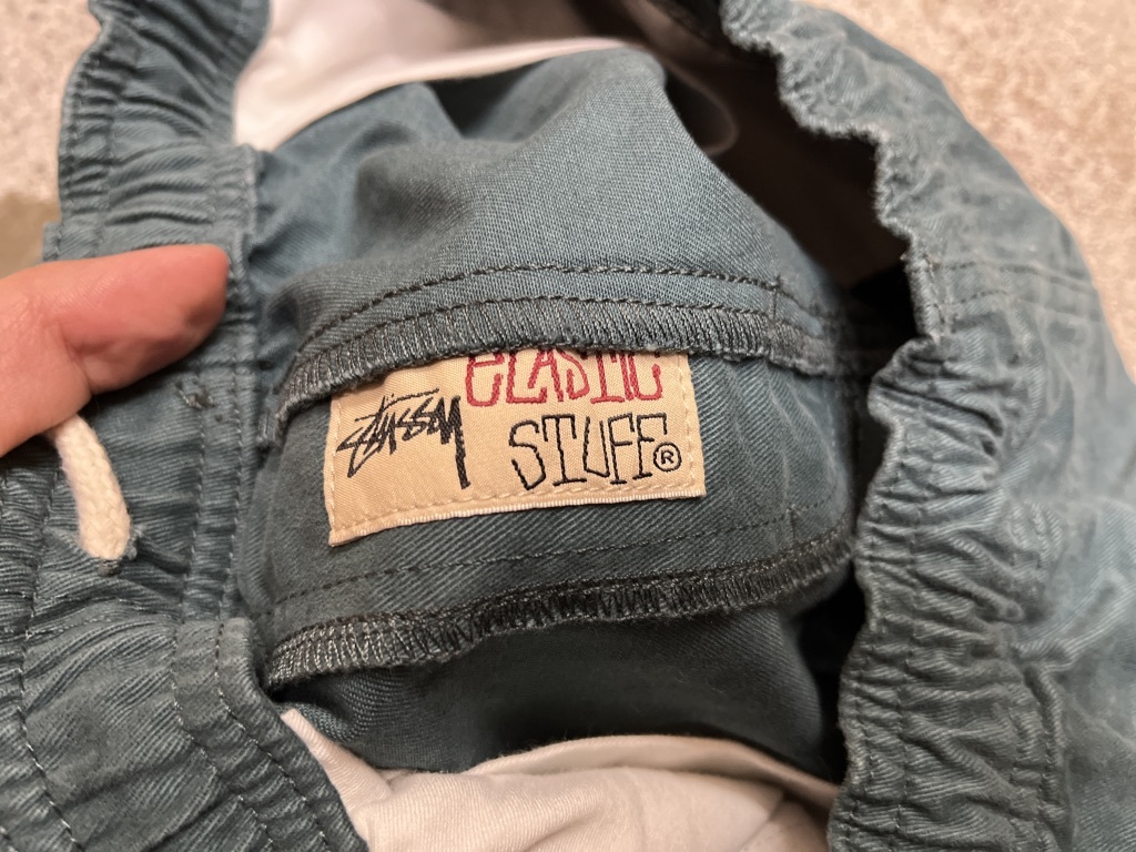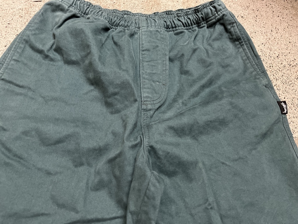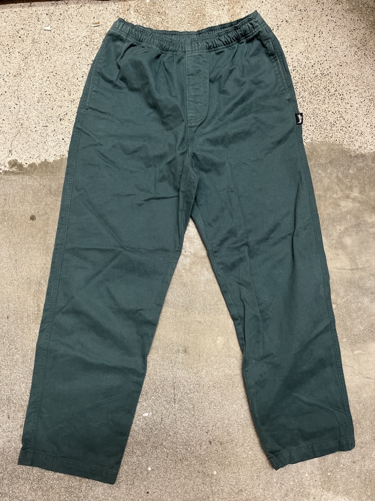 STUSSY / ステューシー Brushed beach pant イージーパンツ メンズmサイズ カーキ グリーン ロゴプリント コットン 116553 used