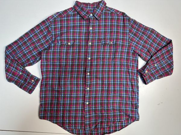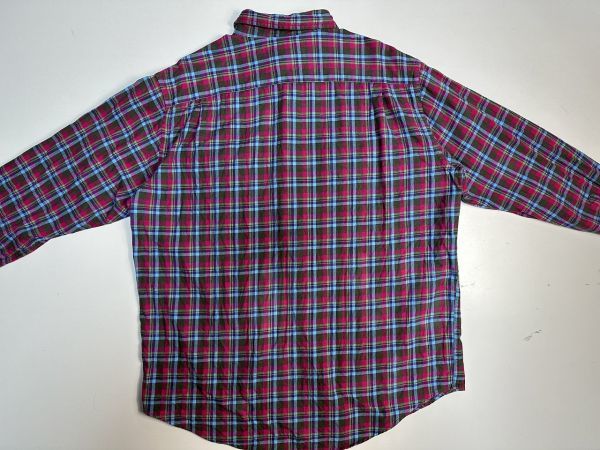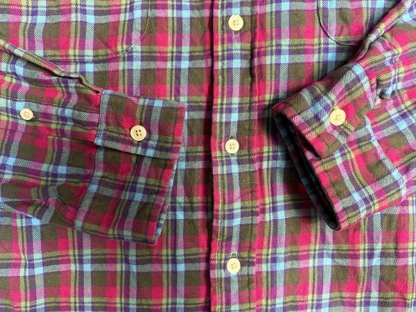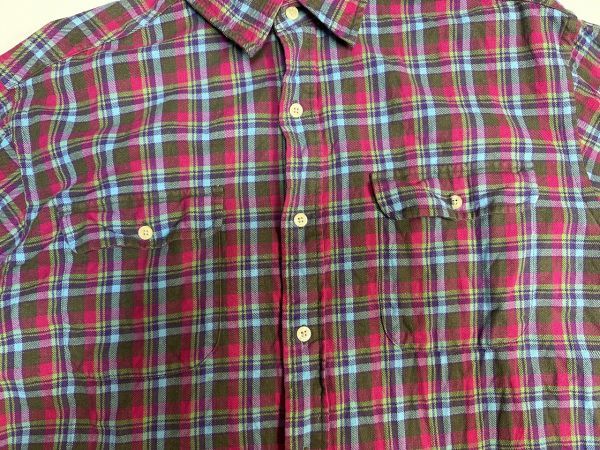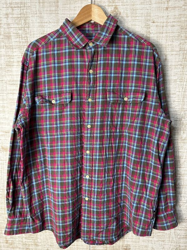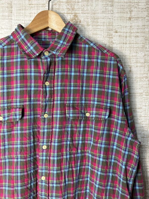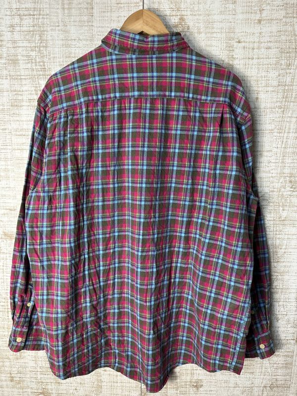 ●US USED CHAPS チャップス ネルシャツ チェック柄 長袖 シャツ グリーン緑×ピンク×ブルー水色【L】コットン