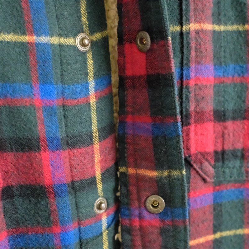 古着 大きいサイズ エルエルビーン 長袖シェルパライナー フランネルシャツ メンズUS-XLサイズ チェック柄 グリーン系 tn-1946
