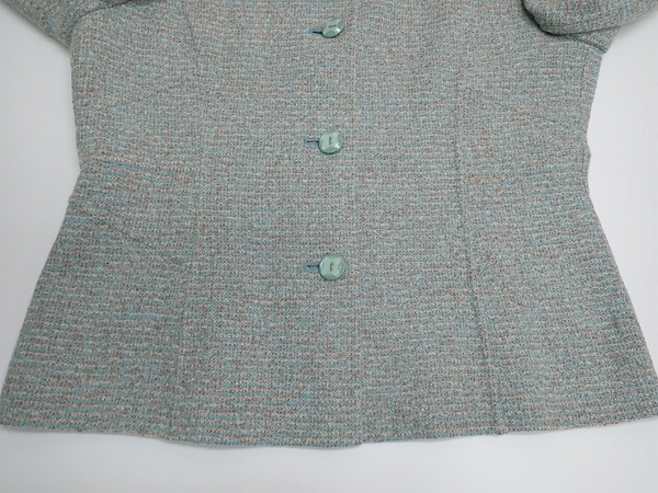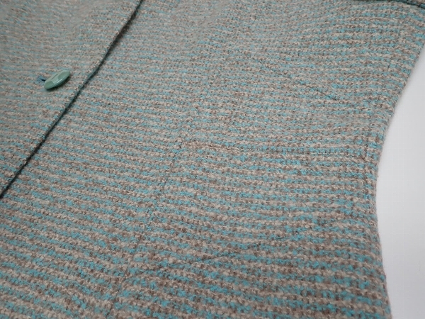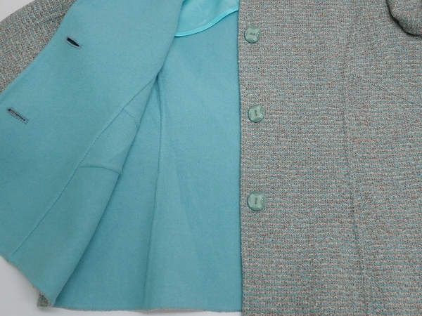| 色 グレー×水色 素材 表地 ウール63% ナイロン20% アンゴラ15% ウール2% 裏地 キュプラ(ベンベルグ)100% | |