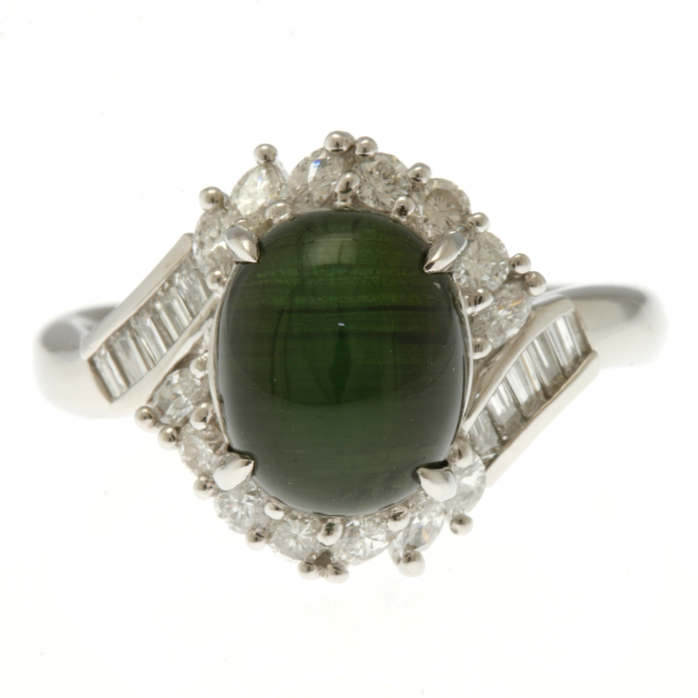 | 深い緑色のトルマリンキャッツアイが引き立つ、クラシカルなリングです。 1点限りの商品ですのでお早めにどうぞ。 ※画像上と実物では多少色具合が異なって見える場合もございます。※尚、本品は中古品の為、気にならない程度の小キズがある場合がございます。 当ストアの商品は他のショッピングサイトや全国のリサイクルキングでの同時販売を行っている為、商品欠品によるご落札のキャンセルをさせて頂く場合がございますので予めご了承下さい。 |