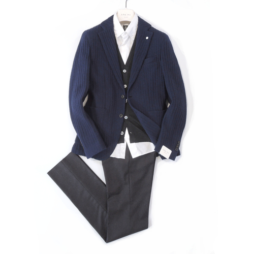 ◇商品説明 L.B.M.1911のモデル「PUNTO」のウールナイロンボンディングニット シングル2Bジャージージャケットです。伸縮性の高いニットジャージー生地はタイトなフィッティングながらもストレスフリーな着心地。ジャージー素材を用いたカプセルコレクションのロゴが内ポケットにあしらわれています。 L.B.M.1911が得意とする遊びのある生地セレクトに2パッチポケットのアンコンストラクテッド仕様は、モダンでクラシカルな雰囲気を残しつつもスポーティで軽快なジャケットに仕立てられています。オフのカジュアルスタイルを品よく格上げしてくれ、会食やゴルフなど様々なシーンでお使いいただけます。 シルエットは綺麗な曲線を描くウエストライン、コンパクトな肩回りと短めの着丈で軽快な印象のすっきりとしたスリムフィットです。副資材は使用していないアンコンストラクテッド仕立てながら、サルトリアの伝統のノウハウを備えたブランドだけに、ラペルや胸周り、ショルダーラインは立体的な美しい仕上がりです。着心地はカーディガンを羽織っているかのように、軽く柔らかでストレスなく着用いただけます。 素材はしなやかで柔らかな肌触り、表面はわずかに毛羽立ったウールナイロンのニットジャージー素材。裏面にストレッチ生地を貼り付けてボンディング加工を施し、ニットジャケットにありがちな着用による生地の伸びや型崩れを防ぎ、適度なハリを確保する事できっちり感をもたらしています。 近年の価格高騰の影響を受けながらも、この価格で「MADE IN ITALY」にしてこのクオリティのジャケットは、非常にコストパフォーマンスが高く、且つ安心感のある老舗のファクトリーメーカーというのもポイントのおすすめの一着です。 ◇仕様 ・2ボタン ・ラペル巾8cm ・サイドベンツ ・2パッチポケット ・裏地なし ・アンコン仕立て ・袖口 開け見せ4ボタン重ね付け ・内ポケット×2 付属品 ・予備ボタン 大小各1個 サイズ詳細 肩幅 43cm 《左右の肩先から肩先直線》 胸囲 92cm 《袖付け根位置の脇下の両端直線×2》 胴囲 84cm 《第1ボタン位置の両端直線×2》 着丈 71.5cm 《後襟付け根の中心から裾まで》 袖丈 65cm 《肩先と袖の接合部から袖先まで》 ※平置きで計測しています。商品によって個体差がありますので多少の誤差はご了承ください。 | ||||