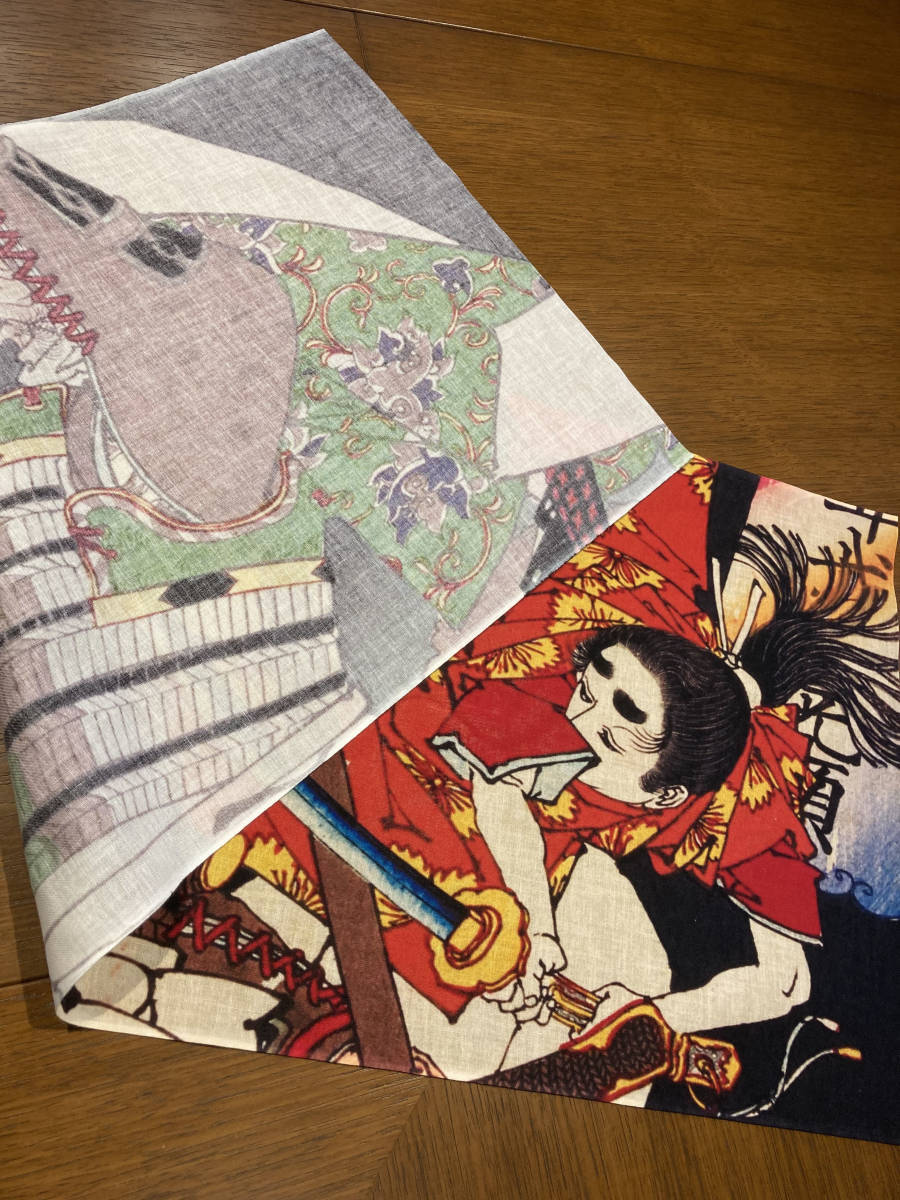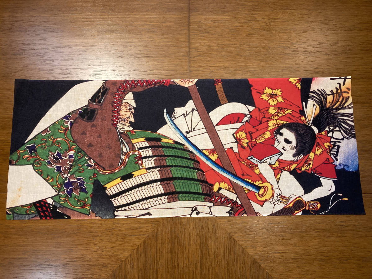 月岡芳年 浮世絵 手ぬぐい 芳年武者无類 源牛若丸 熊坂長範 手拭い サイズは約85cm 35cm